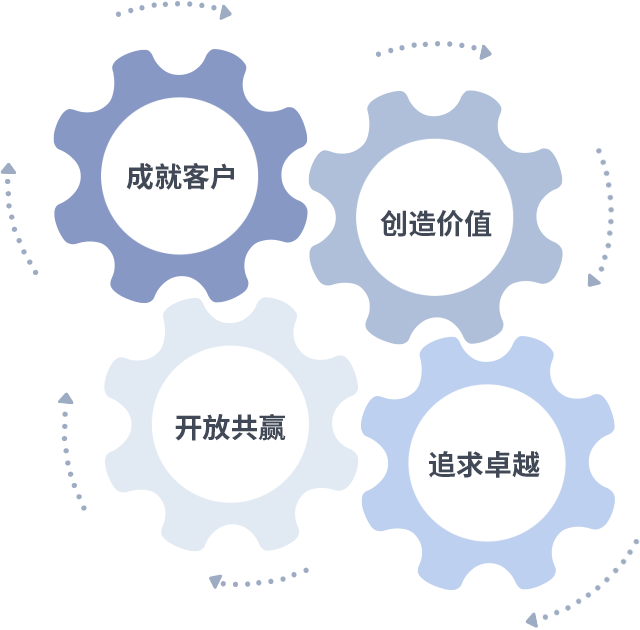 成就客户是一切决策的出发点,创造价值是衡量所有工作的标准,追求卓越是谈球吧做事做人的态度,开放共赢是谈球吧的格局也是最终的结果。价值观的齿轮环环相扣,推动着组织里的每个人不断向前。